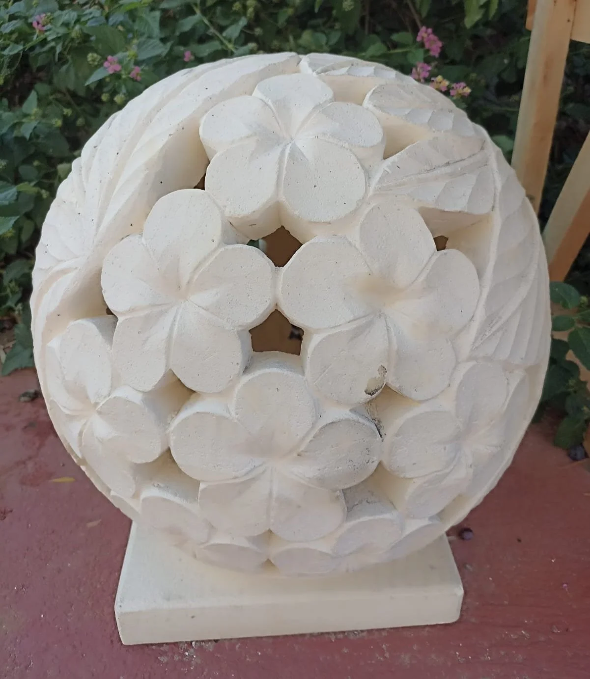 Invitez la douceur et la poésie de l’art balinais dans votre jardin avec cette lampe en pierre naturelle, façonnée à la main sur l’île de Bali. Sa silhouette arrondie, ornée de délicates sculptures de fleurs de frangipanier, diffuse une lumière tamisée à travers la pierre, créant une ambiance sereine et chaleureuse. Une pièce décorative à la fois discrète et pleine de présence, idéale pour instaurer une atmosphère zen en extérieur.